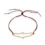 14k Yellow Gold Diamond Hamsa Leather Bracelet