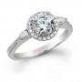 18k White Gold Prong and Bezel Halo White Diamond Engagement Ring