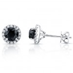 14k White Gold 1 3/4ct twt Black and White Diamond Halo Stud Earrings