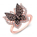14k Rose and Black Gold Brown Diamond Butterfly Ring